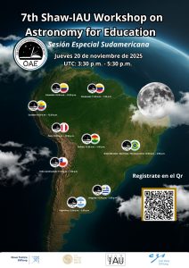 En el marco del 7th Shaw-IAU Workshop on Astronomy for Education, se llevará a cabo la sesión especial suramericana, organizado por NAEC Suramérica y coordinado por Lara Rodrigues NAEC-Chile.
