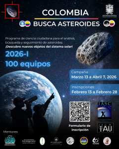 La Organización de Colombia Busca Asteroides los invita a participar en la primera campaña del 2025. Las inscripciones estarán habilitadas desde el 28 de marzo con 100 cupos disponibles. El cierre de inscripciones será hasta el 12 de abril o hasta completar cupos. Los equipos participantes se confirmarán previo al inicio de la campaña.